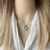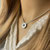 Kleine Lichtreflexe brechen sich an der eismatten Oberfläche des Anhängers und umspielen die sanfte Perle.